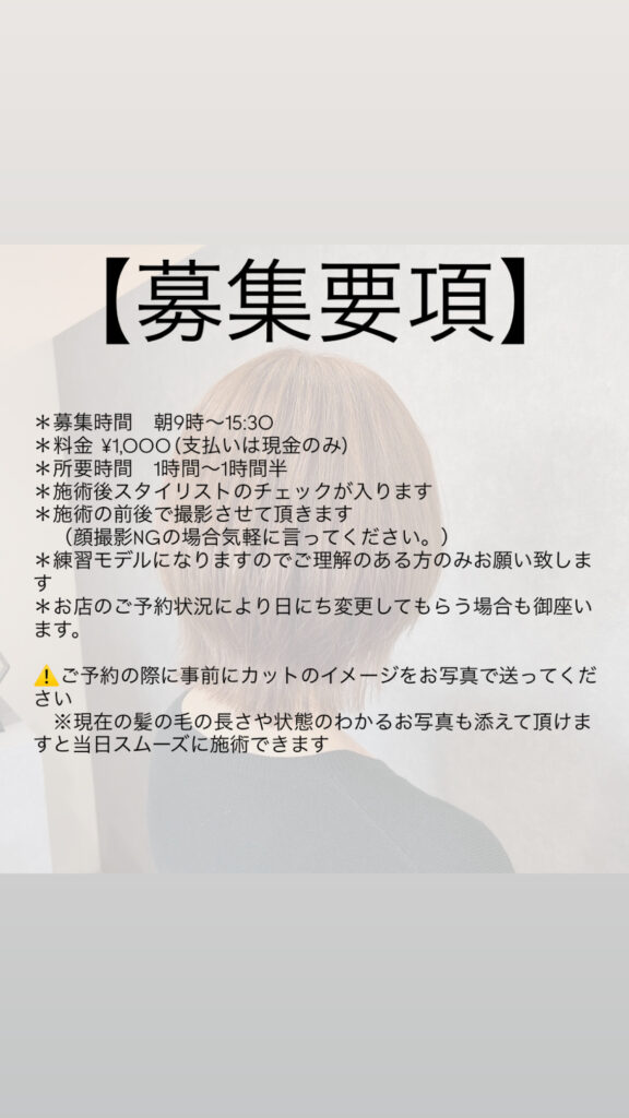 カットモデル募集 #練習モデル募集 #美容師アシスタント #スタイリストデビュー #ヘアモデル募集